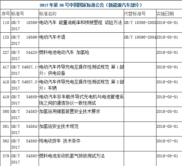 2017年第26號(hào)中國國家標(biāo)準(zhǔn)公告發(fā)布 涉及新能源汽車國家標(biāo)準(zhǔn)16項(xiàng)