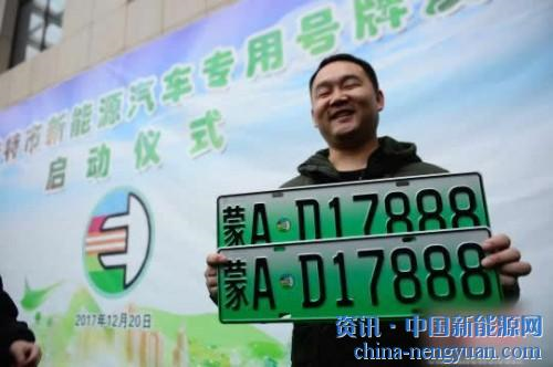 圖為內(nèi)蒙古首輛新能源汽車(chē)專(zhuān)用號(hào)牌?!⑽娜A 攝