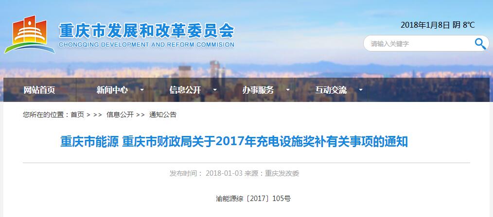 本網(wǎng)獲悉,重慶市財(cái)政、能源部門近日下發(fā)2017年充電設(shè)施獎(jiǎng)補(bǔ)有關(guān)事項(xiàng)的通知,對(duì)建設(shè)充換電基礎(chǔ)設(shè)施的投資主體給予財(cái)政補(bǔ)助。通知顯示,此次