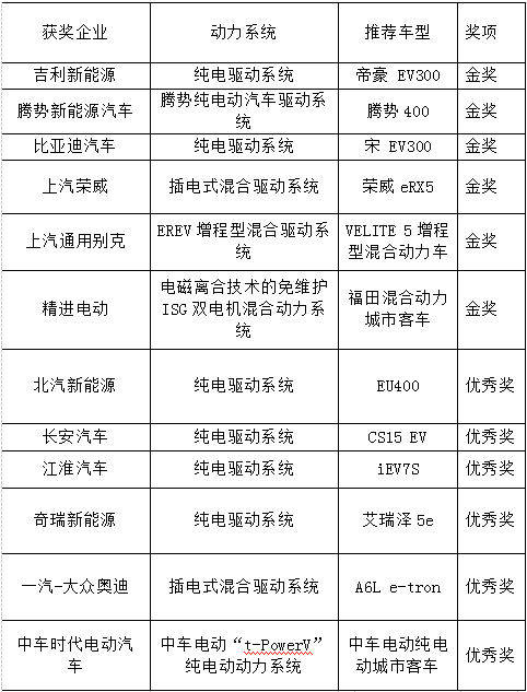 “中國(guó)心”2017年度新能源汽車(chē)動(dòng)力系統(tǒng)評(píng)選獲獎(jiǎng)名單(排名不分先后)