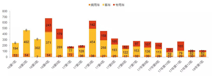 圖1 2016-2018年各批目錄車型數(shù)量對(duì)比