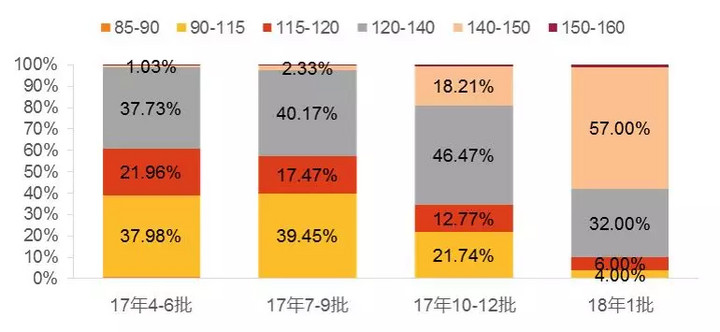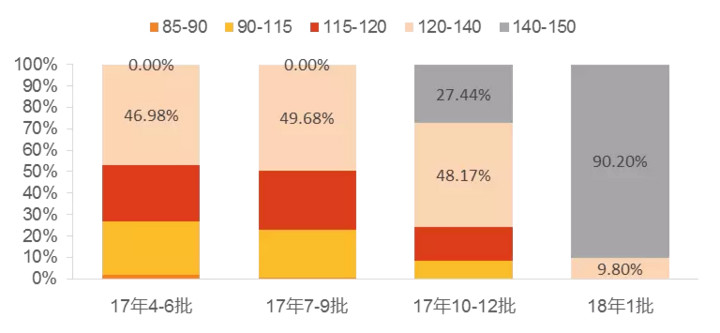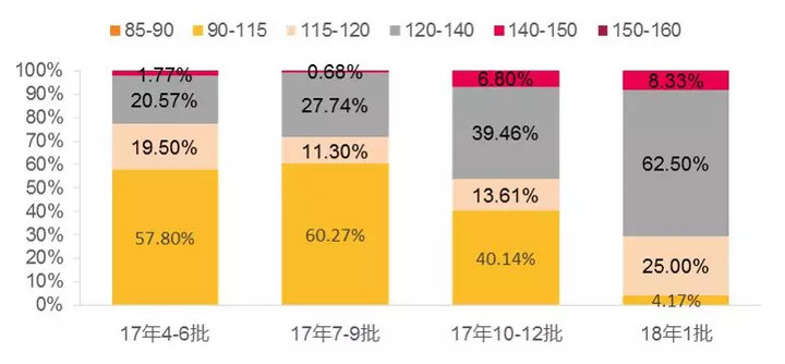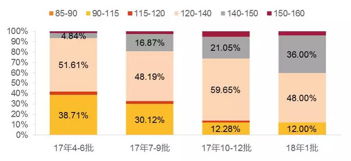 新一批《目錄》電池系統(tǒng)能量密度整體有非常明顯的提升,140Wh/kg以上的車型占比達(dá)到58%。