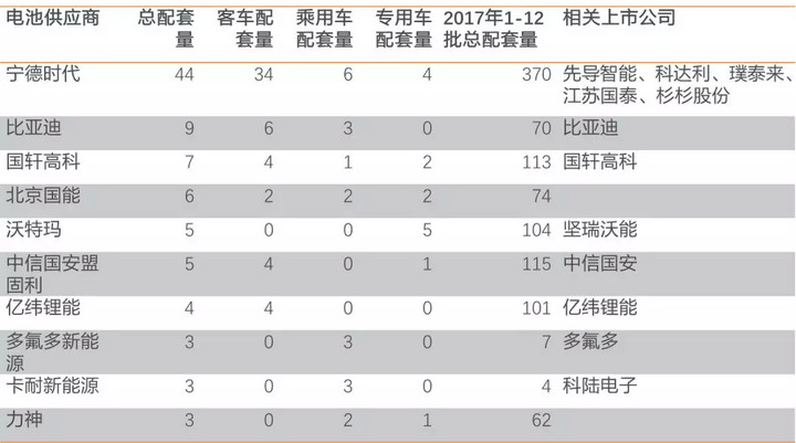 表1 2018年第一批及2017年1-12批《目錄》中電池供應(yīng)商匯總