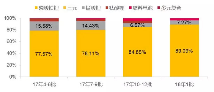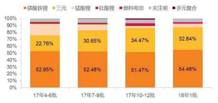 雖然電池類型總統(tǒng)計(jì)與以往相比相差不大,但細(xì)分至不同車型來看,略有變化。