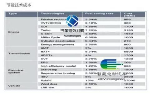 對于降低油耗的節(jié)能技術,近年來行業(yè)通常采用減小發(fā)動機排量、降低車身重量、采用渦輪增壓技術、節(jié)油變速箱、48V等技術措施。依據(jù)相關行業(yè)機構的估算,渦輪增壓技術能夠幫助降低7%的油耗,需要增加的成本為3000元左右,而48V節(jié)油效果估算為5%左右,需要增加的成本為2500元左右。