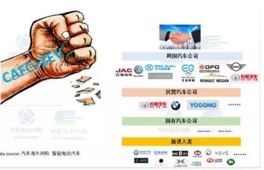 而以北汽新能源、長江汽車、奇瑞新能源、江鈴新能源、云度、知豆、蔚來、威馬、小鵬等為代表的已經(jīng)獲得獨立新建純電動生產(chǎn)資質的企業(yè)或通過其他途徑過得資質的造車新勢力,以及其他新能源資質的申請者如特斯拉、FMC、博郡、唐駿、河南森源、時風、車和家、游俠、小鵬、奇點、力帆、比克、云南德動、昌河、上汽通用五菱等等,則會成為包括國有企業(yè)和跨國公司在內(nèi)各方合縱連橫、投資、代工、并購等的潛在對象。