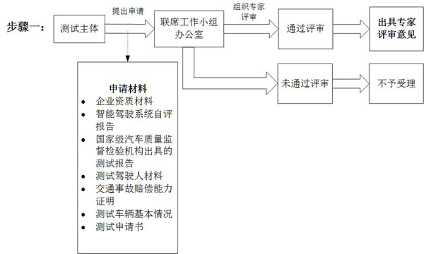 2、聯(lián)席工作小組辦公室在收到申請材料后,應(yīng)及時組織召開評審會議,出具測試主體是否符合智能駕駛道路測試要求的評審意見;對于符合要求的測試主體,明確其測試車輛、測試駕駛員、測試區(qū)域、測試時間等。