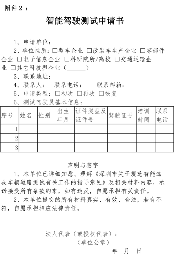 附件:深圳市關(guān)于規(guī)范智能駕駛車輛道路測試有關(guān)工作的指導(dǎo)意見(征求意見稿)
