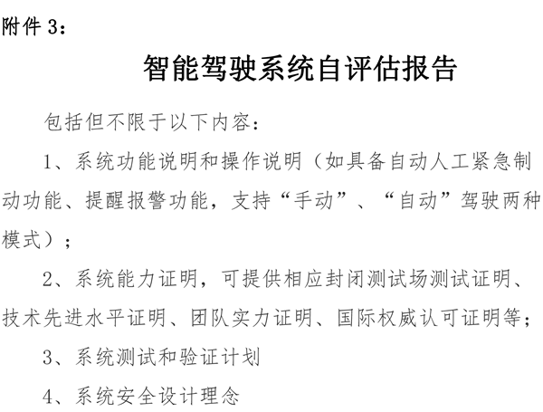 3、測試主體應(yīng)取得聯(lián)席工作小組辦公室出具符合智能駕駛道路測試要求的評審意見。