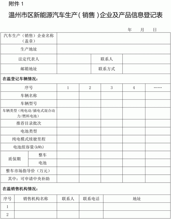 附件:1.溫州市區(qū)新能源汽車生產(chǎn)(銷售)企業(yè)及產(chǎn)品信息登記表