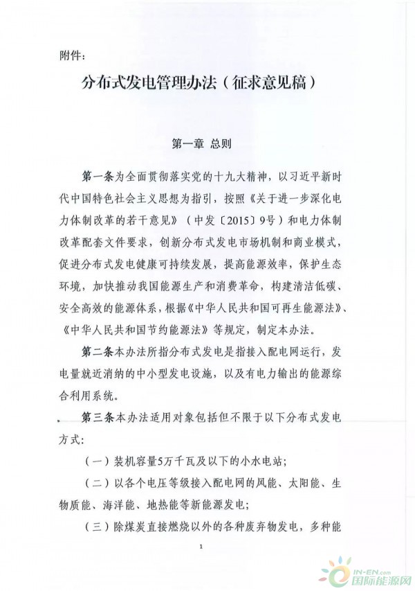 3月20日,國家能源局綜合司關(guān)于《分布式發(fā)電管理辦法(征求意見稿)》意見的函。本辦法所指分布式發(fā)電是指接入配電網(wǎng)運行,發(fā)電量就近消納的