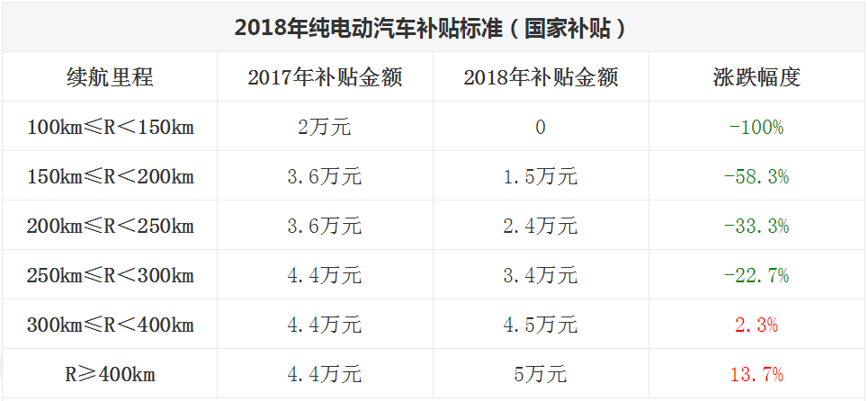 以上數(shù)據(jù)可以看出,針對(duì)純電動(dòng)車型,能拿到國(guó)家補(bǔ)貼的續(xù)航標(biāo)準(zhǔn)從100km提升到了150km,且續(xù)航里程在300km以下的車型都出現(xiàn)了不同程度的降低,也就是說想要拿到更多的國(guó)家補(bǔ)貼,其續(xù)航里程必須300km起步。