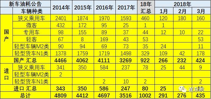 2018年4月工信部的汽車燃油消耗量網(wǎng)站http://chinaafc.miit.gov.cn/公布了3月的新車油耗通告,這是很好的新車市場(chǎng)研究資料,從中我們可以感受到新車推出的節(jié)奏、新油耗技術(shù)的推進(jìn)等很多信息。
