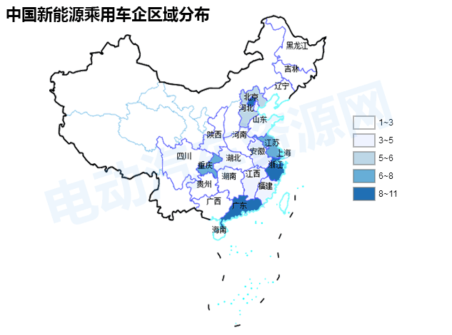 全國各省市新能源乘用車新舊造車勢力分布大全