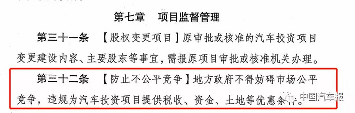 然而,在征求意見(jiàn)稿的結(jié)尾處,記者發(fā)現(xiàn)了更為嚴(yán)格的條款,明確提出:地方政府不得妨礙市場(chǎng)公平競(jìng)爭(zhēng),違規(guī)為汽車(chē)投資項(xiàng)目提供稅收、資金、土地等優(yōu)惠條件。對(duì)于那些不符合規(guī)定的汽車(chē)投資項(xiàng)目,將實(shí)施聯(lián)合懲戒。