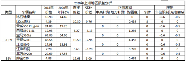 我們做以下的分析,如果假定在未來的五年內(nèi),車輛的成本年降5%,把價格壓下去,補(bǔ)貼取消,購置稅保留,車牌保留,車位限制(20萬×3%的損益)和充電安裝計入(5千記錄)。