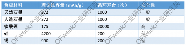 圖表 幾種鋰電池負(fù)極材料的價(jià)格(單位:元/kg)