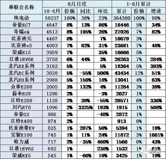 另外,每月排在銷量排行榜的前10名的車型基本得以確定,比如奇瑞eQ1小螞蟻、比亞迪元EV、e5、榮威Ei5、江淮Iev6E、北汽EX、EU系列等,已經(jīng)連續(xù)數(shù)月出現(xiàn)在榜單上。
