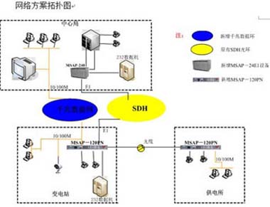 根據(jù)供電公司現(xiàn)有通信系統(tǒng)得特點,結(jié)合實際情況,在現(xiàn)有的通信系統(tǒng)的基礎(chǔ)上增加工業(yè)級千兆環(huán)網(wǎng)設(shè)備,實現(xiàn)數(shù)據(jù)通信與網(wǎng)絡(luò)信息傳輸分離。在通信系統(tǒng)的縱向上實現(xiàn)不同業(yè)務(wù)數(shù)據(jù)的分離。滿足國電公司和電監(jiān)會對電力二次通信設(shè)備安全防范要求,分別建設(shè)通信數(shù)據(jù)網(wǎng)和管理信息網(wǎng)。