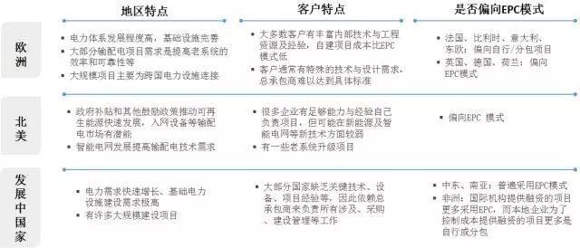 全球輸配電業(yè)務(wù)模式——發(fā)展中國家更多采用EPC模式,有助于產(chǎn)品捆綁銷售,發(fā)達國家較多采用分包、自建的模式。