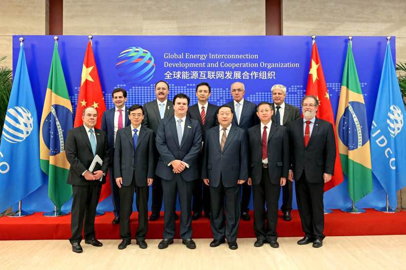 圖為全球能源互聯(lián)網(wǎng)發(fā)展合作組織代表與巴西代表團合影。資料圖