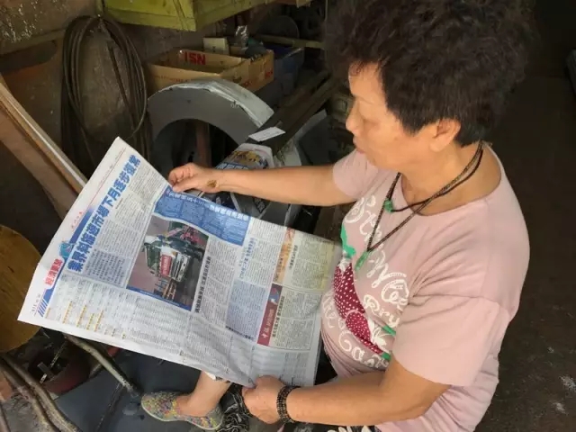▲澳門街坊在看《澳門日?qǐng)?bào)》上有關(guān)南方電網(wǎng)的報(bào)道。