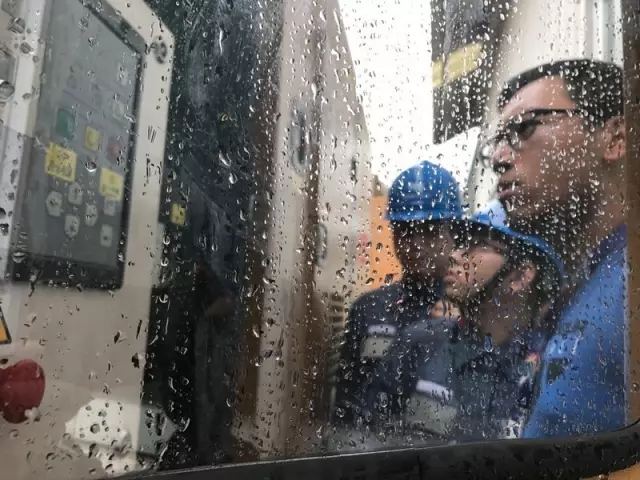 ▲8月28日,南方電網(wǎng)技術(shù)人員在風(fēng)雨中與澳門交通事務(wù)局工作人員進(jìn)行對(duì)接,讓他們盡快熟悉發(fā)電機(jī)的使用方法。林丹丹 攝