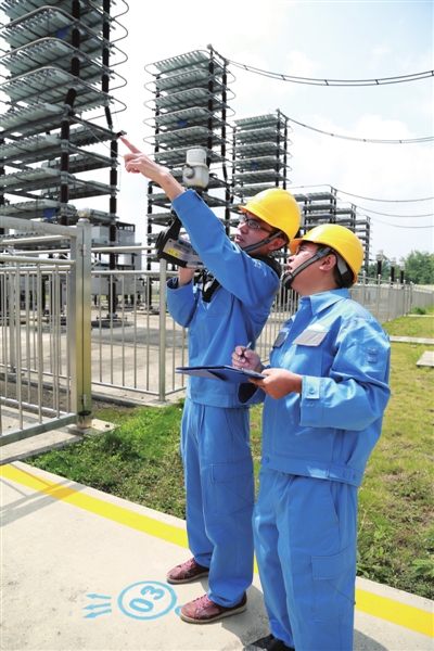“電容器最高32.8℃,電抗器最高36.2℃,電阻器最高48.5℃,均屬正常值。”在一組交流濾波器跟前,朱星釗邊操作紅外線測溫儀邊報(bào)出一個(gè)個(gè)數(shù)據(jù),他的兩只腳,穩(wěn)穩(wěn)地踩在印刷在地上的兩只藍(lán)色腳印上。