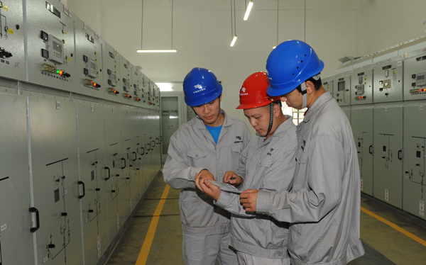 工人們正在緊張地進(jìn)行電力設(shè)備的安裝工作。