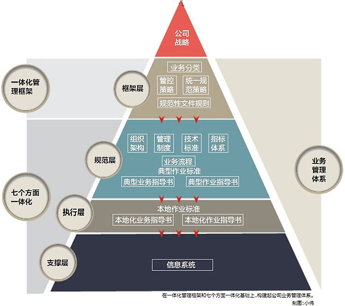“公司構(gòu)建的業(yè)務(wù)管理體系,是近幾年來一體化管理推進(jìn)工作的總結(jié),融入了‘兩冊’等基層先行先試經(jīng)驗,是在一體化管理框架和七個方面一體化基礎(chǔ)上形成的。”公司戰(zhàn)略部主任楊晉柏說。