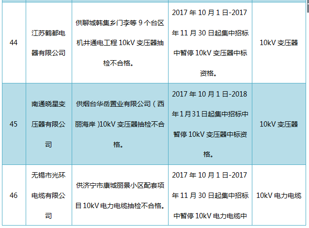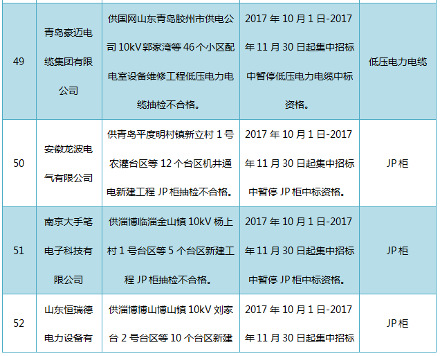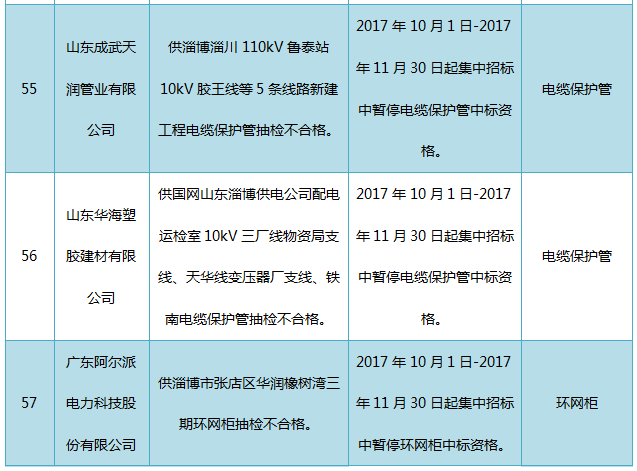 國(guó)網(wǎng)山東關(guān)于2017年第七批供應(yīng)商不良行為處理情況的公示(2017年10月)