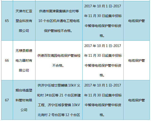 國網(wǎng)山東關(guān)于2017年第七批供應(yīng)商不良行為處理情況的公示(2017年10月)