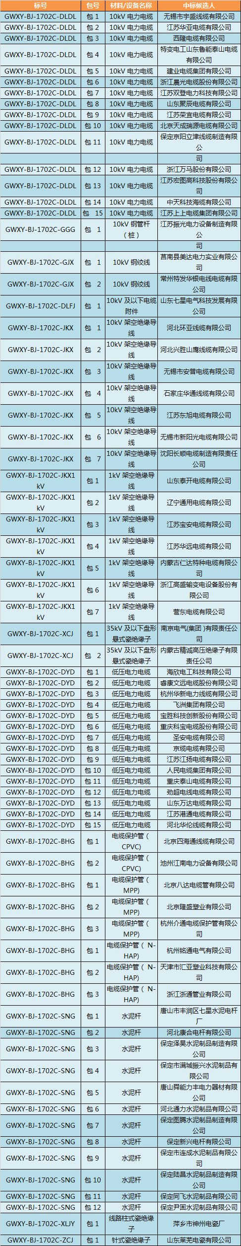 國(guó)網(wǎng)北京2017年第二次配網(wǎng)設(shè)備/線(xiàn)材協(xié)議庫(kù)存貨物招標(biāo)中標(biāo)候選人