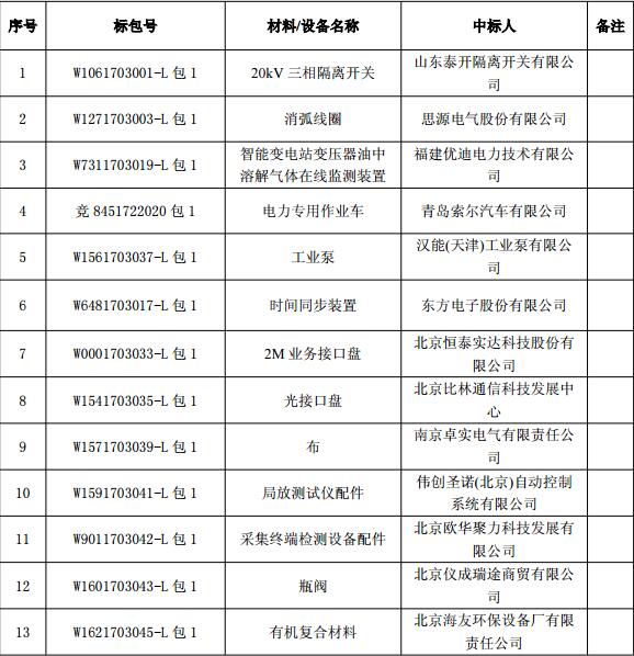 國(guó)網(wǎng)北京市電力公司 2017 年第七批競(jìng)爭(zhēng)性談判中標(biāo)人名單(招標(biāo)編號(hào):W1061703001-L 等)