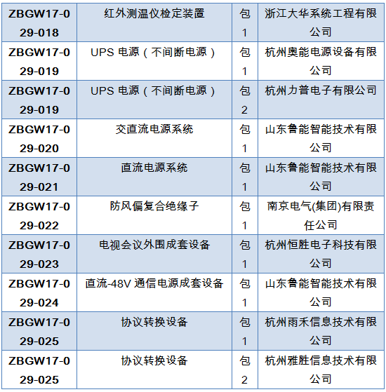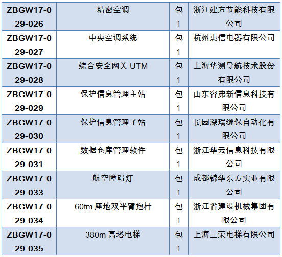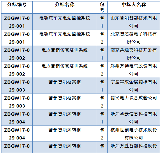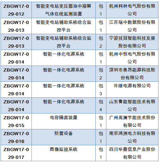 國網浙江省電力公司2017年第四批設備、材料招標采購中標公告除【ZBGW17-029-032】串聯(lián)電抗器及耦合電容器成套裝置候選人公示活動已經結束。現(xiàn)將中標人名單公告如下:招標編號:ZBGW17-029