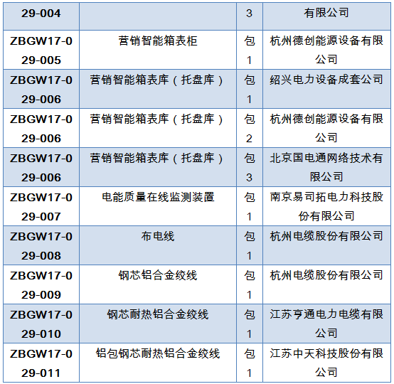 國網浙江2017年第四批設備、材料招標采購中標公告