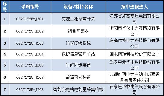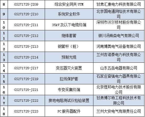 國網(wǎng)甘肅省電力公司2017年第五次物資競爭性談判采購項目中標(biāo)結(jié)果(采購編號:GS271725-JZ)