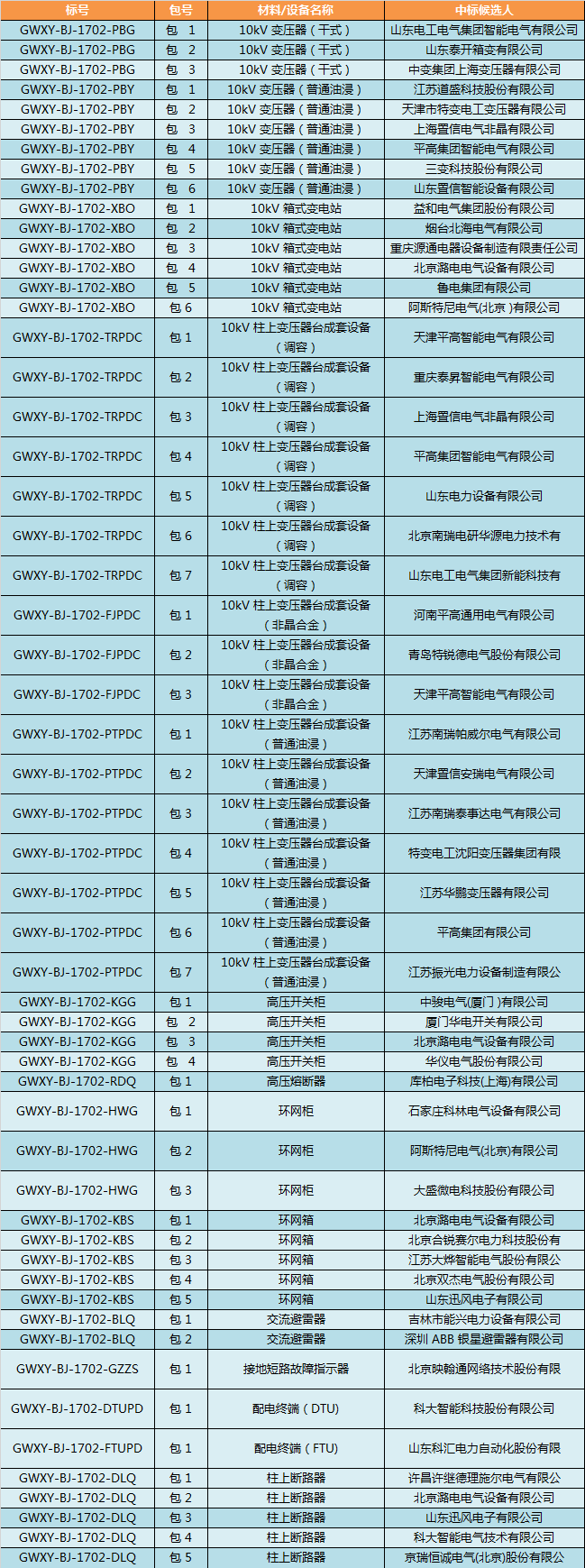 國(guó)網(wǎng)北京2017年第二次配網(wǎng)設(shè)備/線材協(xié)議庫(kù)存貨物招標(biāo)中標(biāo)候選人