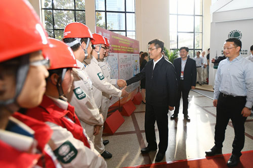5月9日下午,舒印彪一行檢查了首屆中國自主品牌博覽會國家電網(wǎng)展區(qū),并聽取了國網(wǎng)上海市電力公司關(guān)于本屆展會和中國品牌發(fā)展國際論壇的保電工作匯報。在講解員的引導下,舒印彪一行參觀了國家電網(wǎng)展區(qū),對展示手段、展示內(nèi)容、展品布置給予充分肯定。舒印彪還詳細聽取了國網(wǎng)上海電力從電源接入、人員安排、應急保障等方面對保電工作所做匯報,并慰問保電工作人員,感謝他們的辛勤付出。